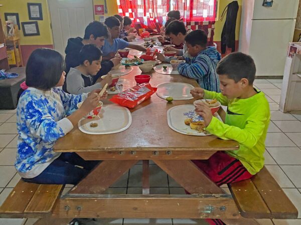 At Nueva Creación, learning happens in every corner of the home — around shared tables, under shady outdoor spaces, and in small groups where older children help the younger ones.